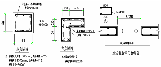 1.工程概况:本工程为河北省廊坊某公寓加固改造工程。结构形式:异型柱框架、短肢剪力墙结构。结构主体竣工后经检测,局部楼层的墙、柱、梁的砼强度不满足设计要求。需对结构主体进行加固。