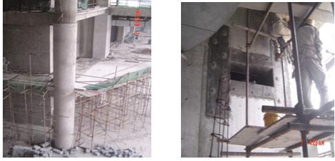 1.工程概况:本工程为河北省廊坊经济技术开发区某酒店加固改造工程。结构形式:三层及以下为现浇钢筋砼框支-剪力墙结构体系,四层以上为现浇钢筋砼剪力墙结构体系。施工过程中经检测,地下室、首层及二层柱及剪力墙的砼强度不满足设计要求,需对结构主体进行加固。
