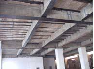 1.工程前因:该改造加固工程结构主要表现形式为框架结构,由于该厂房提高生产能力设备更新,使用功能改变,结构上部荷载增加,经检测验算,原结构梁、柱承载能力不能满足技改后设备需要,部分构件已不能满足现行规范受力荷载要求,且受到功能改变的影响,特对其进行结构补强加固。