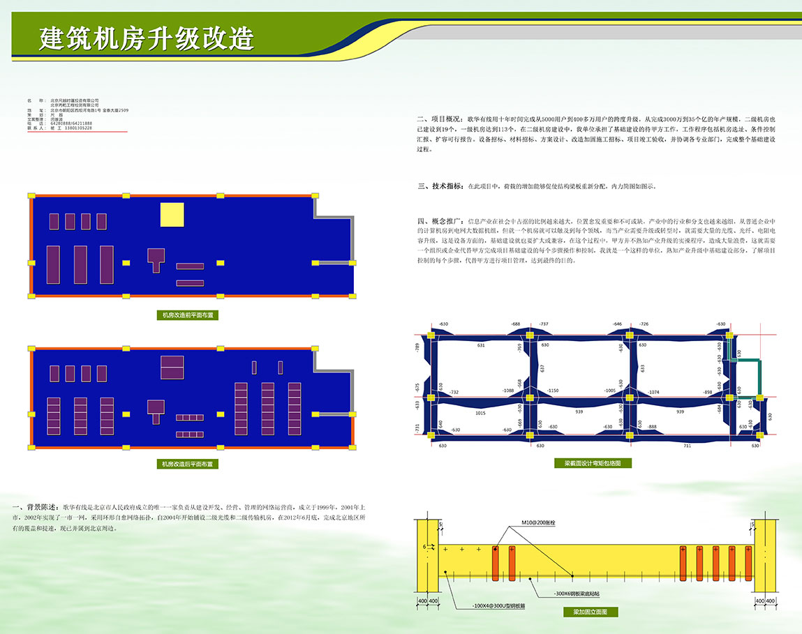 四、概念推广:信息产业在社会中占据的比例越来越大,位置愈发重要和不可或缺,产业中的行业和分支也越来越细,从普通企业中的计算机房到电网大数据机组,但就一个机房就可以触及到每个领域,而当产业需要升级或转型时,就需要大量的光缆、光纤、电阻电容升级、这是设备方面的,基础建设就也要扩大或兼容,在这个过程中,甲方并不熟知产业升级的实操程序,造成大量浪费,这就需要一个组织或企业代替甲方完成项目基础建设的每个步骤操作和控制,我就是一个这样的单位,熟知产为升级中基础建设部分,了解项目控制的每个步骤,代替甲方进行项目管理,达到最终的目的。