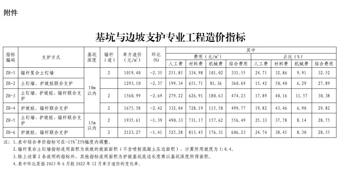 关于发布《2023 年 6 月基坑与边坡支护专业工 程造价指标》的通知